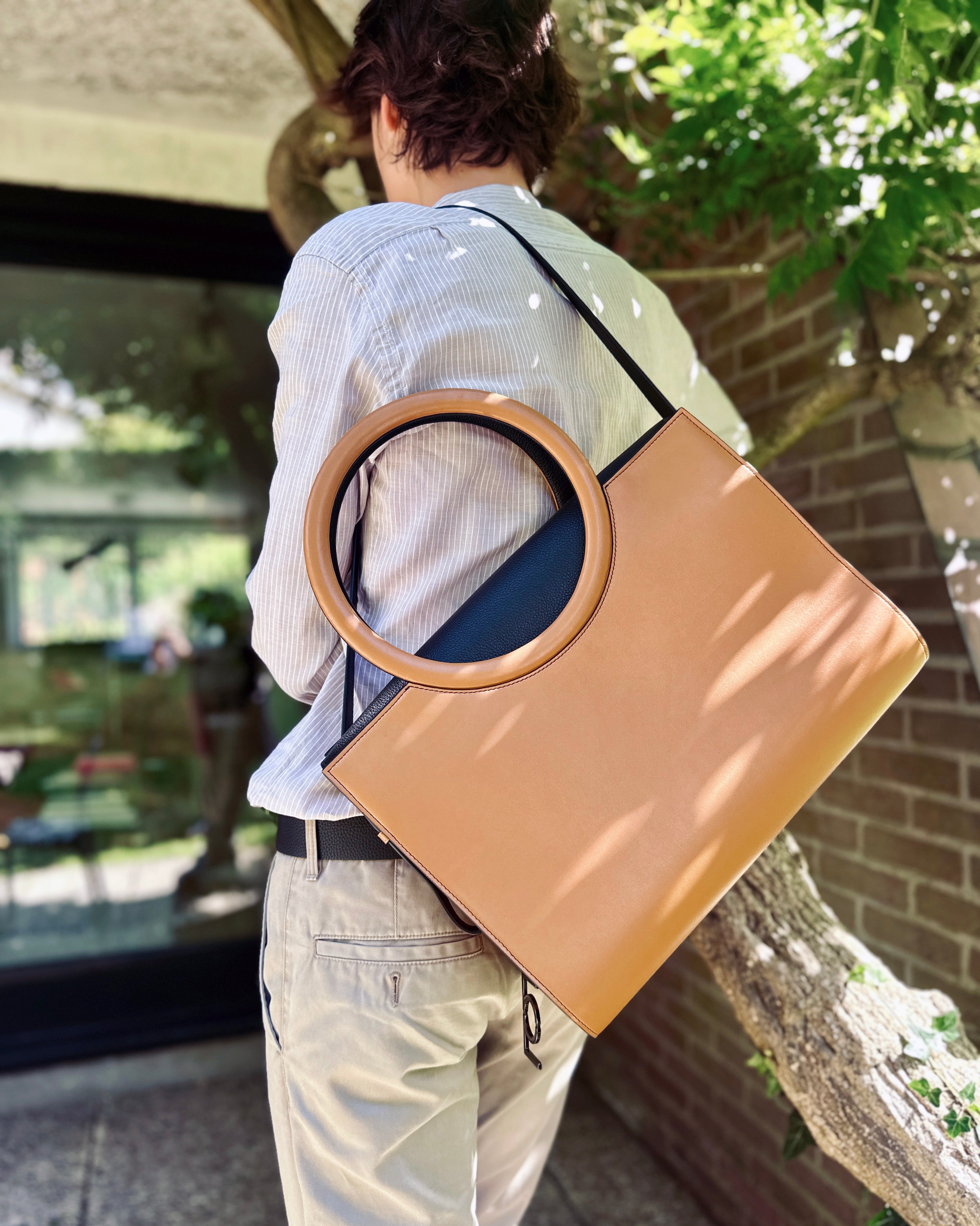 En configuration A4, the One adopte une silhouette plus compacte et élégante, idéale pour vos déplacements. Son format optimisé vous accompagne en rendez-vous clients ou en transit, transportant l'essentiel avec style. Les coutures contrastées et les finitions en canon de fusil brossé affirment l'identité unique d'amoroma.